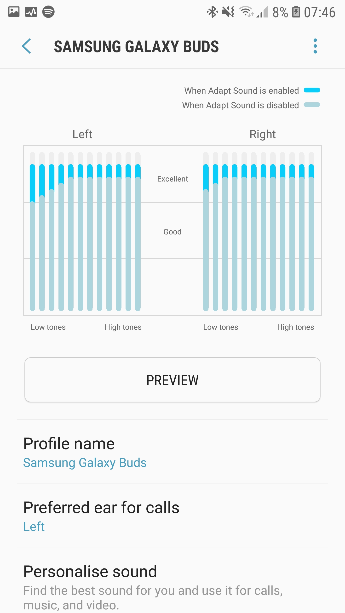 Galaxy buds clone has the most enjoyable sound at very low volumes with the most deep rumbling bass. Its low sound leakage disturbs others least. It is fashionable, coming in 3 colours and has volume control.