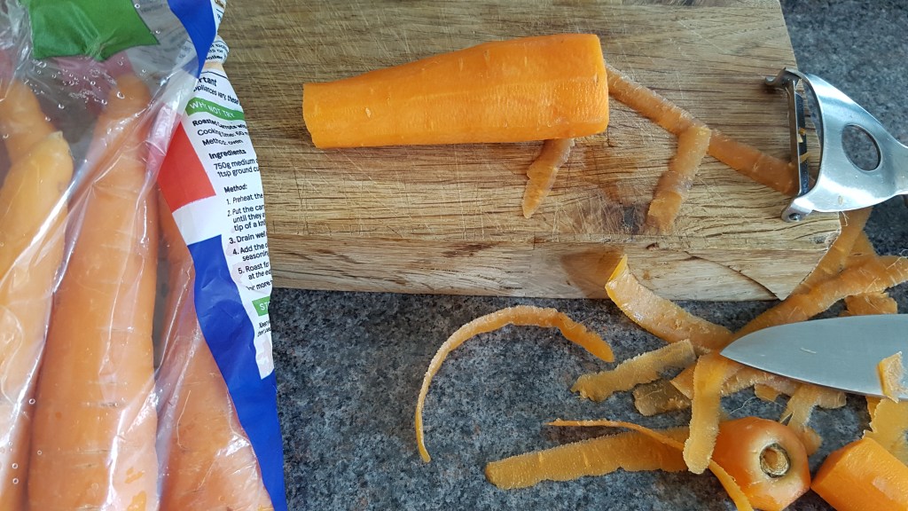 A kilo costs 50p which lasts me several days and peeling and trimming gives me a little routine to occupy my mind.