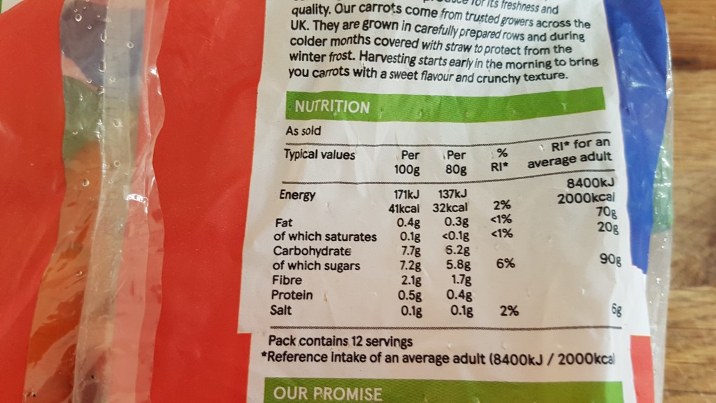 The calorie count is surprisingly low given how sweet they are and their famous use in carrot cake and while all the carbs are sugars there is a decent relative proportion of fibre, protein and even fat.