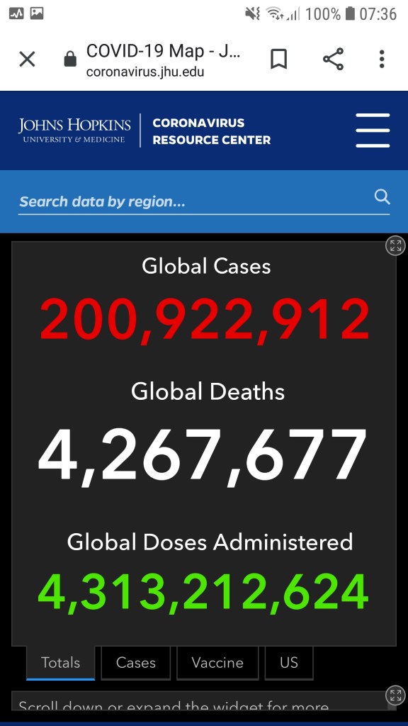 John Hopkins University shows currently 4 million deaths from 200 million Covid cases worldwide indicating a 2% risk of death from Covid infection overall.