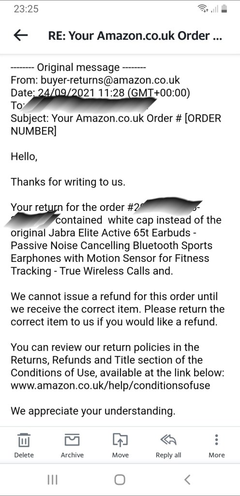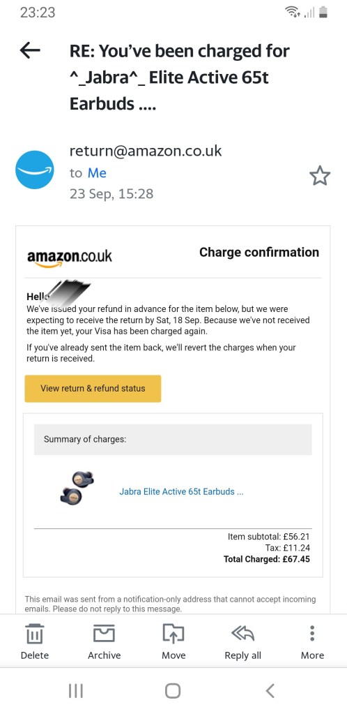 Amazon refunded me immediately I returned the Jabras as usual which was great and I thought no more about it until some weeks later when I got this email: