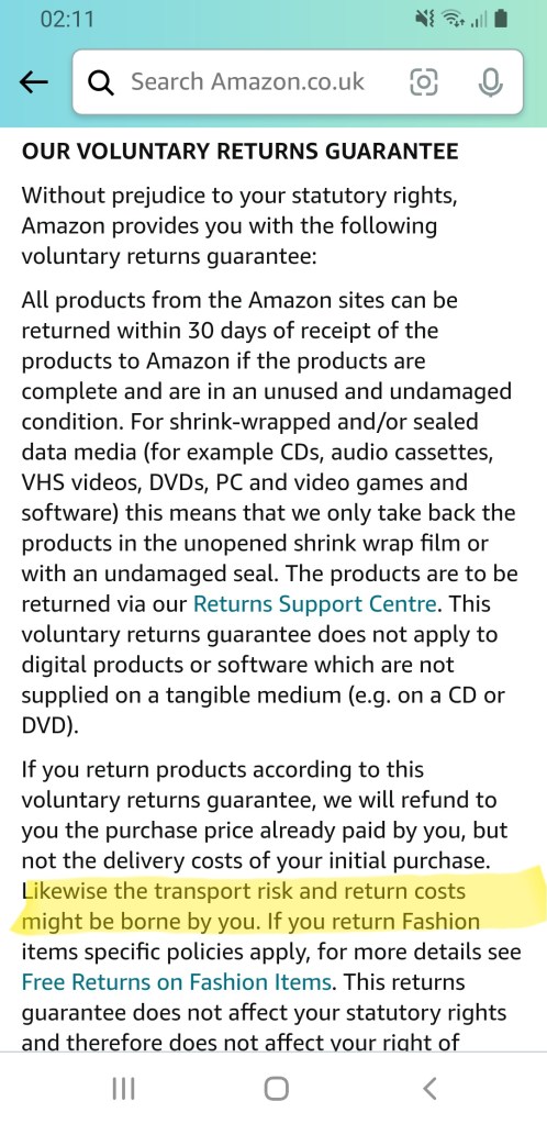 So, after a lot of time and hassle, for now all good in the hood – I think. If you scroll through the several pages of Amazon’s Terms and Conditions you’ll find this: