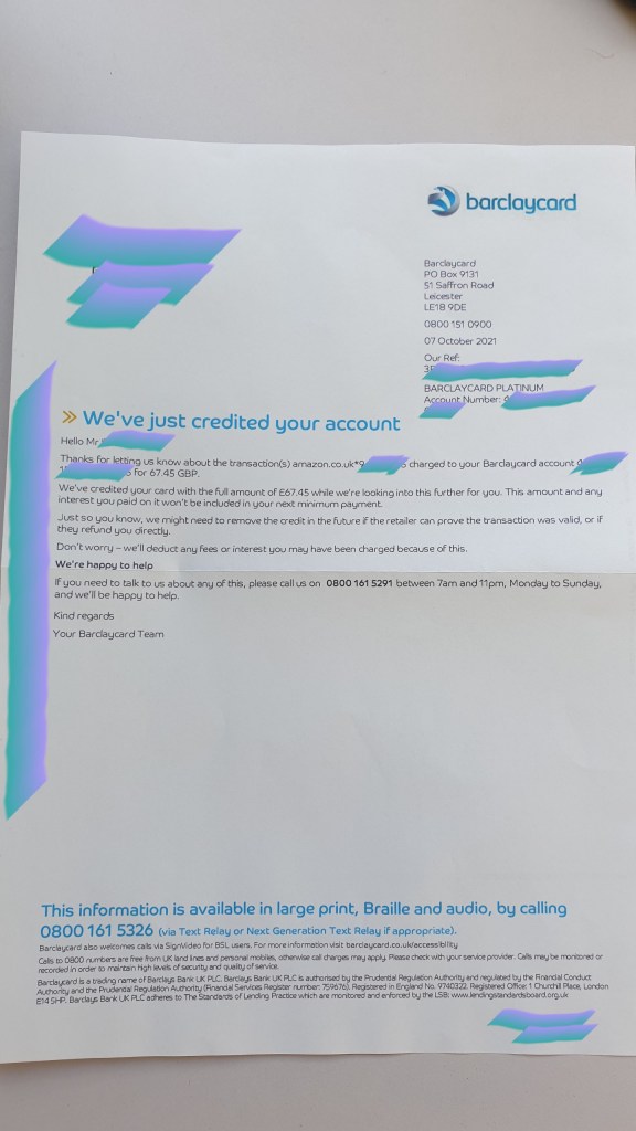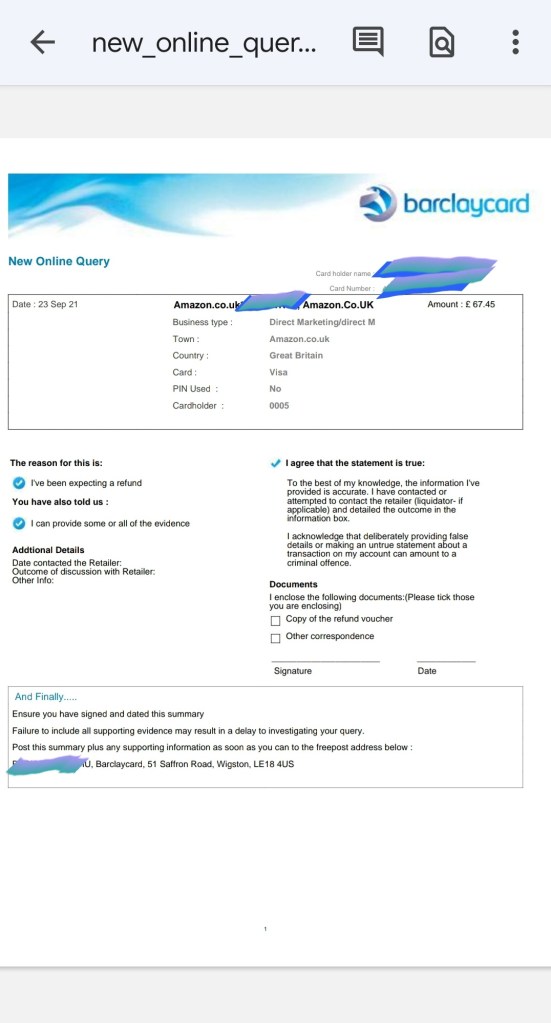 At this point I was totting up the time and hassle the return of this relatively inexpensive item had cost me, thinking it was now getting rather silly. But that just spurred me on to put this matter to bed and get some result from all the time I’d spent on the matter.