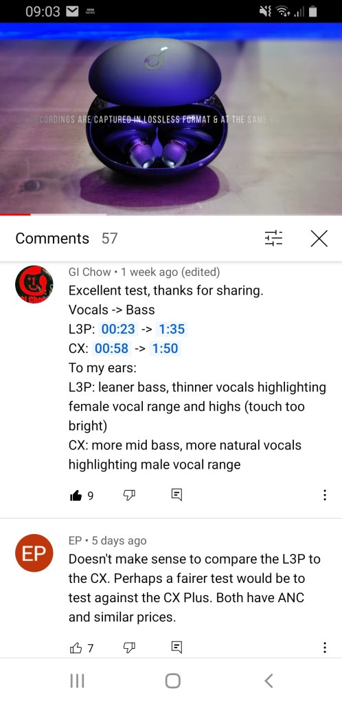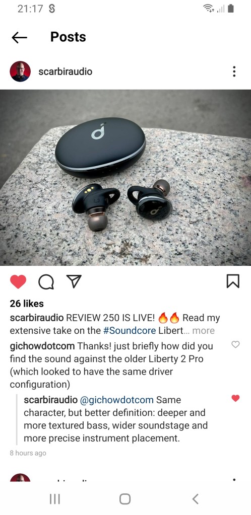 My takeaway from the reviews above is that this is a TWS that can, after changing EQ settings, sound good if not the best, especially to those who prefer a V-shaped sound signature and has several features that would not normally be found at the price including reasonably effective ANC (for earphones), transparency mode, configurable frequency equalisation, multipoint connection allowing 2 devices to be connected at the same time, single bud ‘mono mode’ use either side, configurable touch controls with all tap and hold options as well as support for the high res LDAC codec (the value of which is debatable since tuning has a much more significant effect on what one hears). Ultimately, unless you need all the features then equivalent or better sound quality, especially for those who prefer a natural sound, can be had for less money. And if you can wait the Liberty 3 Pro will likely be discounted when no longer flavour of the month.