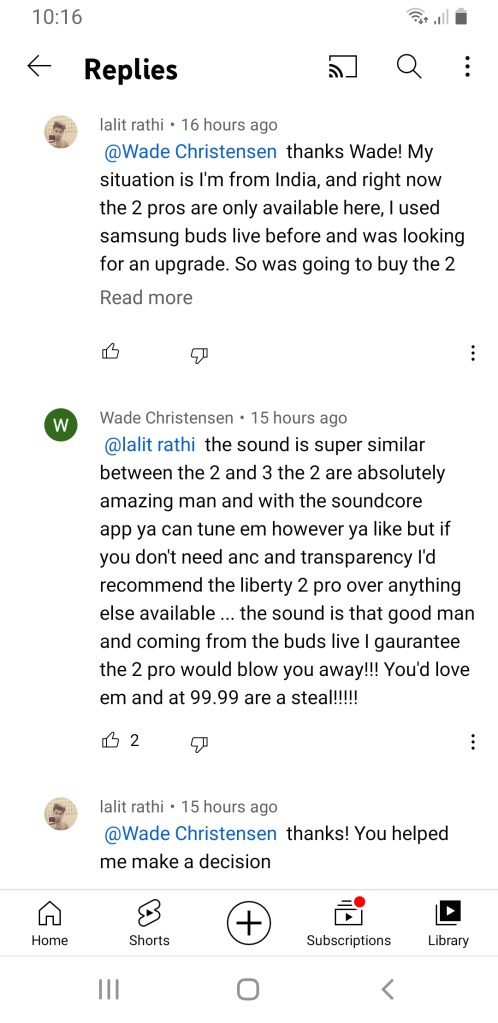 Underground Tech – “Sound quality is an improvement. It sounds like the bass is a little more balanced with the mids and highs. These are a little more clear over the Liberty 2 Pros. It feels like the bass can overshadow at certain points but that’s when I had it on full volume. I think the sound is solid for the price” 5:37 @