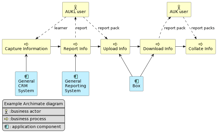 Note: if you change the diagram the URL of your edited diagram will also change, which means that you will need to change the diagram URL embedded in any documents that refer to it if you want them to reflect your edits. Of course, if you simply download and include the generated png file in your document you need to change the document whenever you revise the diagram too. The upside is that anyone can revise the diagram in future without having to recreate it from scratch and without needing any software – just internet access. One isn’t even dependent on a particular website since the ‘long string’ from http://www.plantuml.com/plantuml/uml will also work at https://www.planttext.com and one can even install one’s own diagram server: