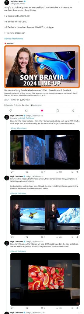 A Dutch Retailer Expert Nederland has stolen a march on the tech TV reviewers and shocked the TV review world by releasing technical details of the new–for-2024 Sony Bravia TV models.